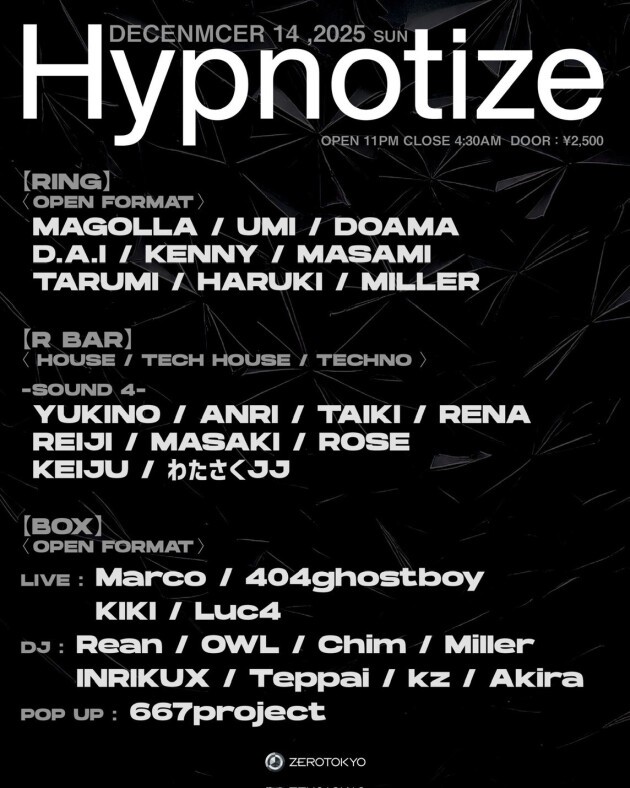HP:https://zerotokyo.jp/event/hypnotize-1214/