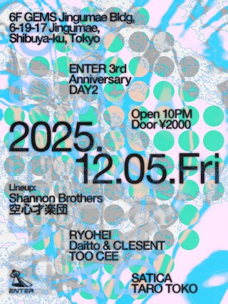 2022年12月15日にオープンしたENTER SHIBUYA。この度、3周年を祝した2週間に及ぶ9つのアニバーサリーパーティを開催する。記念すべきDAY2は、テクノ、テックハウスを基軸に、国内外にとどまらずグローバルに活躍する面々が揃った。