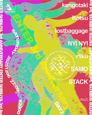 2022年12月15日にオープンしたENTER SHIBUYA。この度、3周年を祝した2週間に及ぶ9つのアニバーサリーパーティを開催する。記念すべきDAY3は、ハウスミュージックを得意とする面々が揃った。