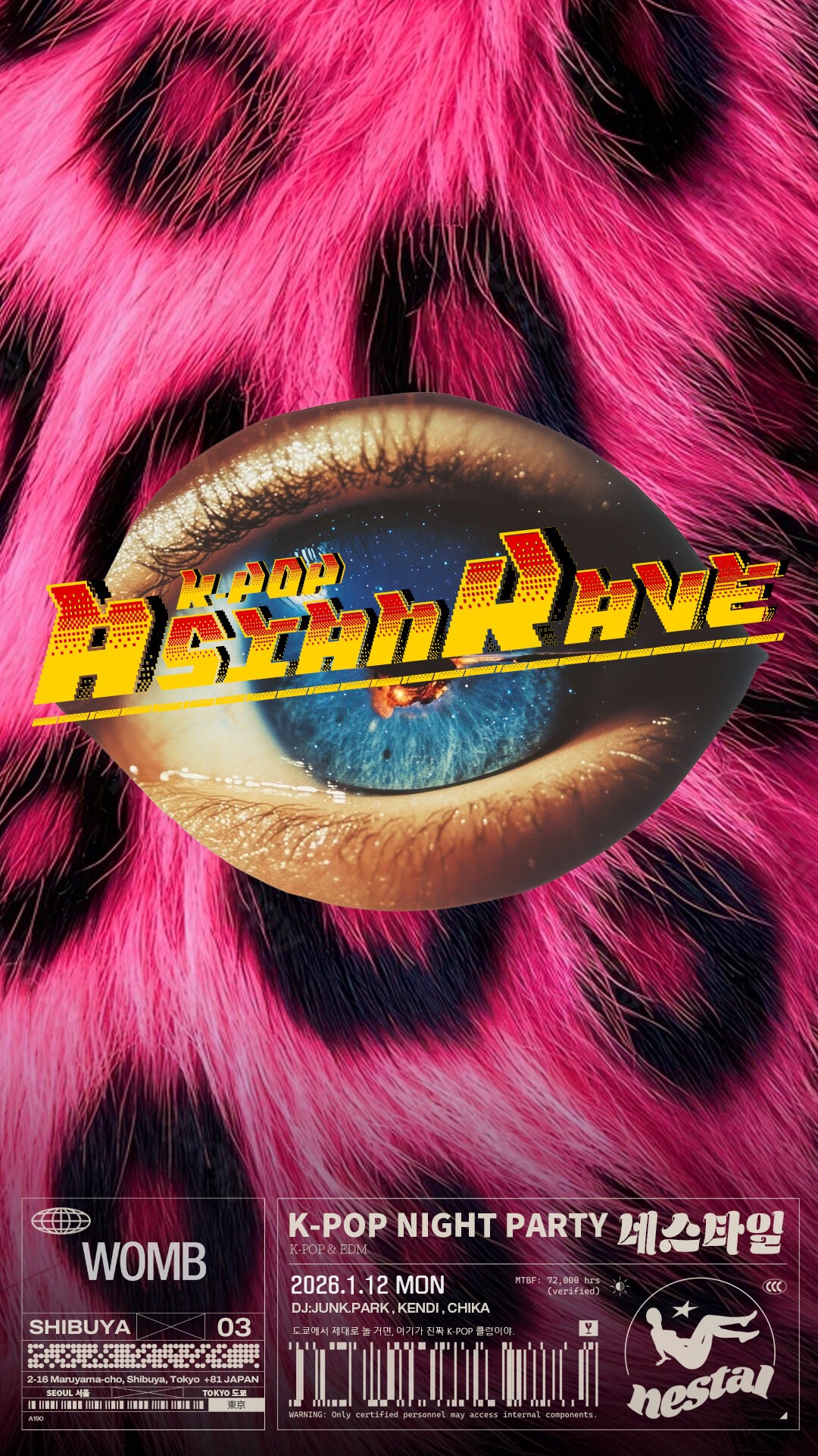 渋谷WOMBで開催される本格K-POPクラブナイト。 日本トップクラスのK-POP DJが、世界標準DJプレイで最新K-POPをミックス。 NESTALが届けるリアルなK-POPナイト。