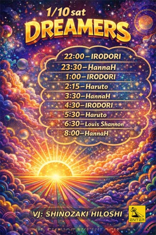 1/10 (土)、年明け最初のDreamersは、レギュラー陣がじっくりとフロアを育てていくロング・セッション。