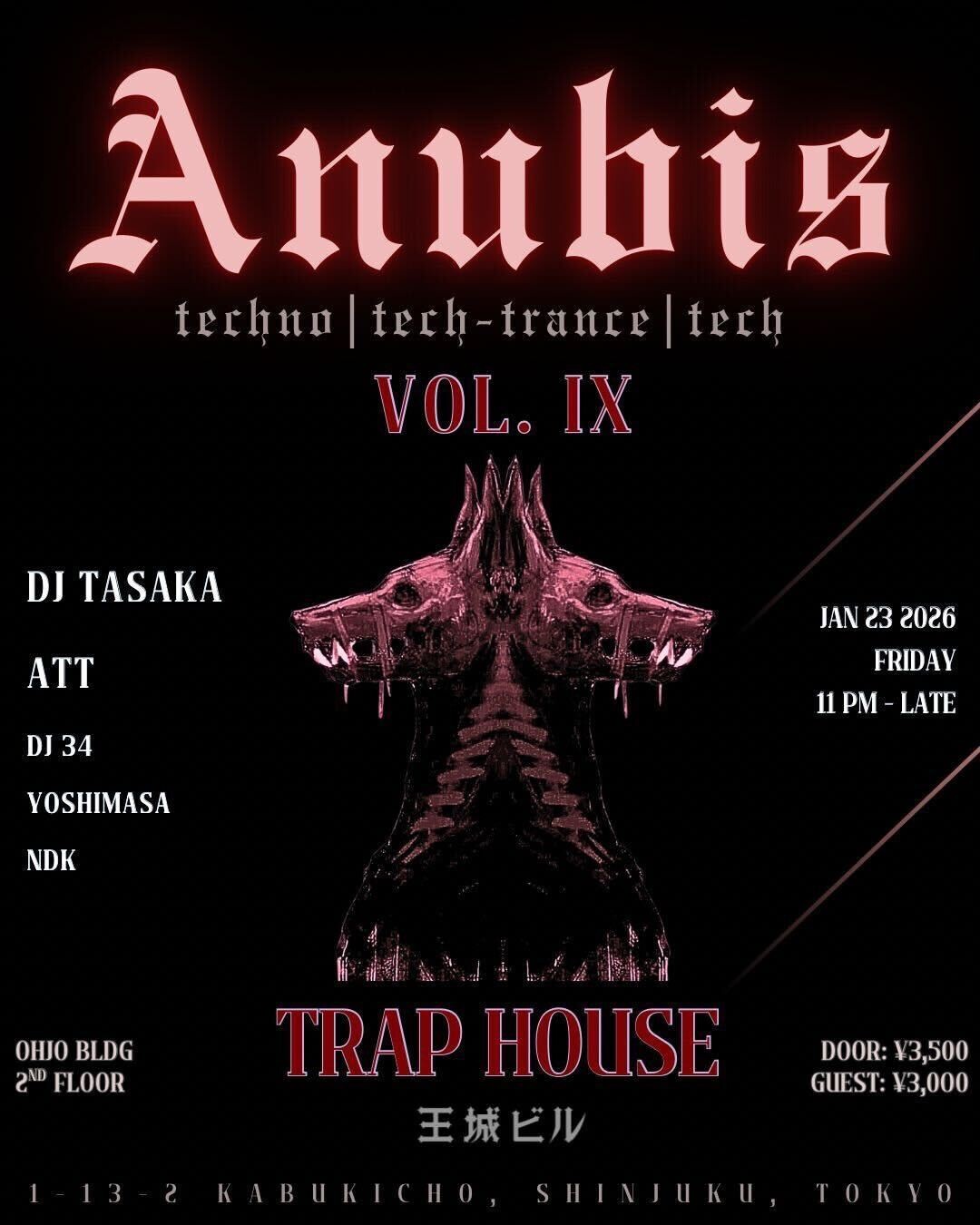 Anubis will kick off 2026 loud & flashy with ANUBIS vol. 9: TRAP HOUSE which takes over the entire OHJO Building for a full 3-floor takeover packed with bass, bodies, and nonstop movement.