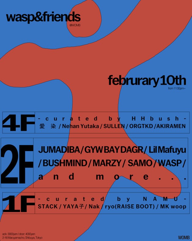 wasp&friends, a party cutting across Tokyo’s night culture, takes over WOMB on Tuesday, February 10.