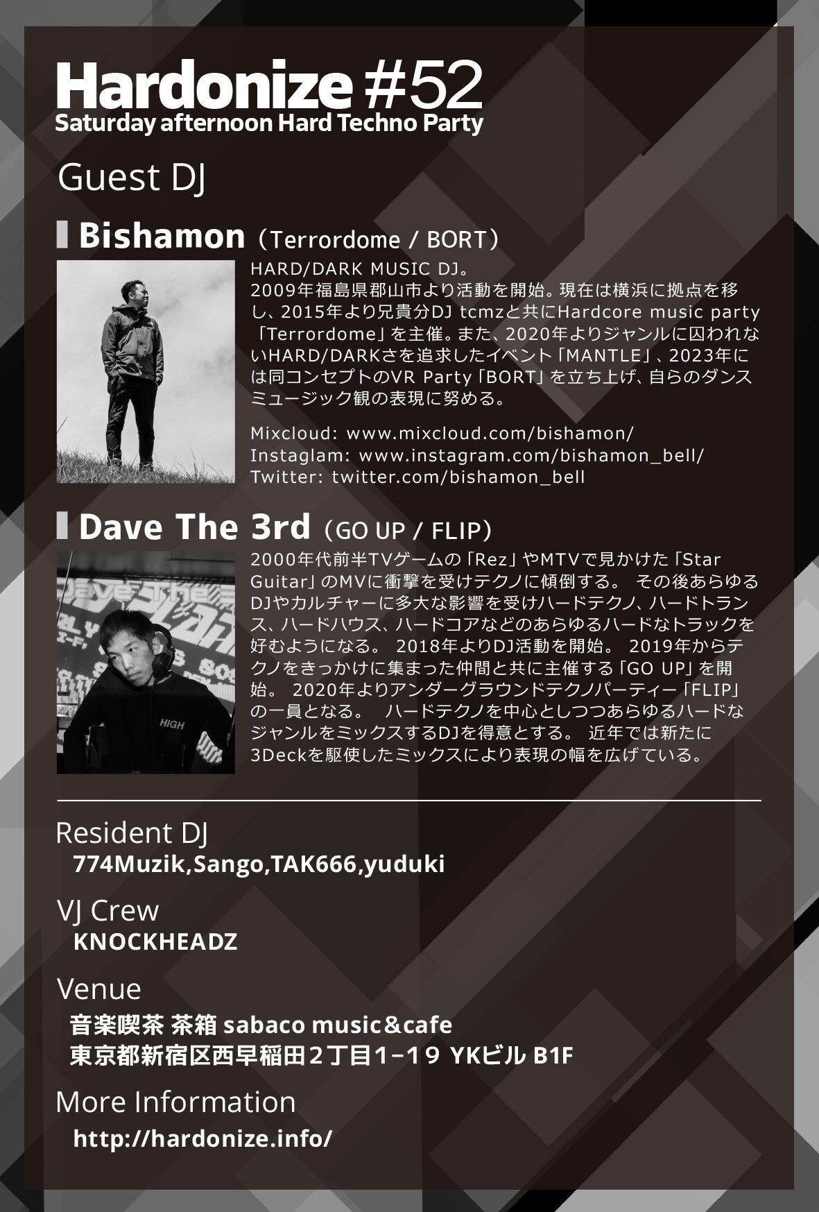 With the excitement of the 51st event still fresh, the next Hardonize welcomes two powerful guests who pierce the core of “HARD” and build the floor with their unique aesthetics.