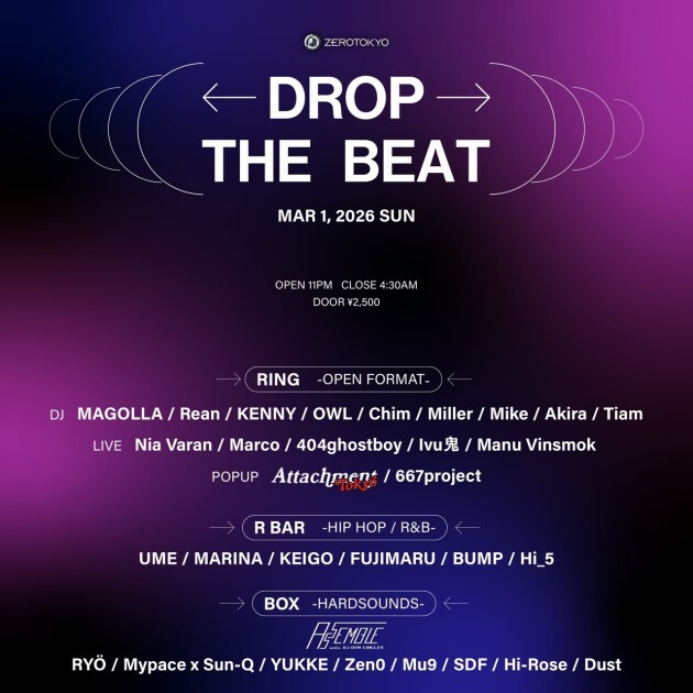 HP:https://zerotokyo.jp/event/drop-the-beat-0301/