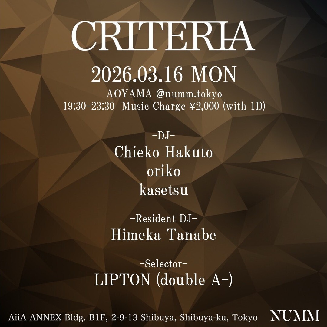 「CRITERIA」とは音楽の楽しみ方の基準をストイックに追求していくパーティー。