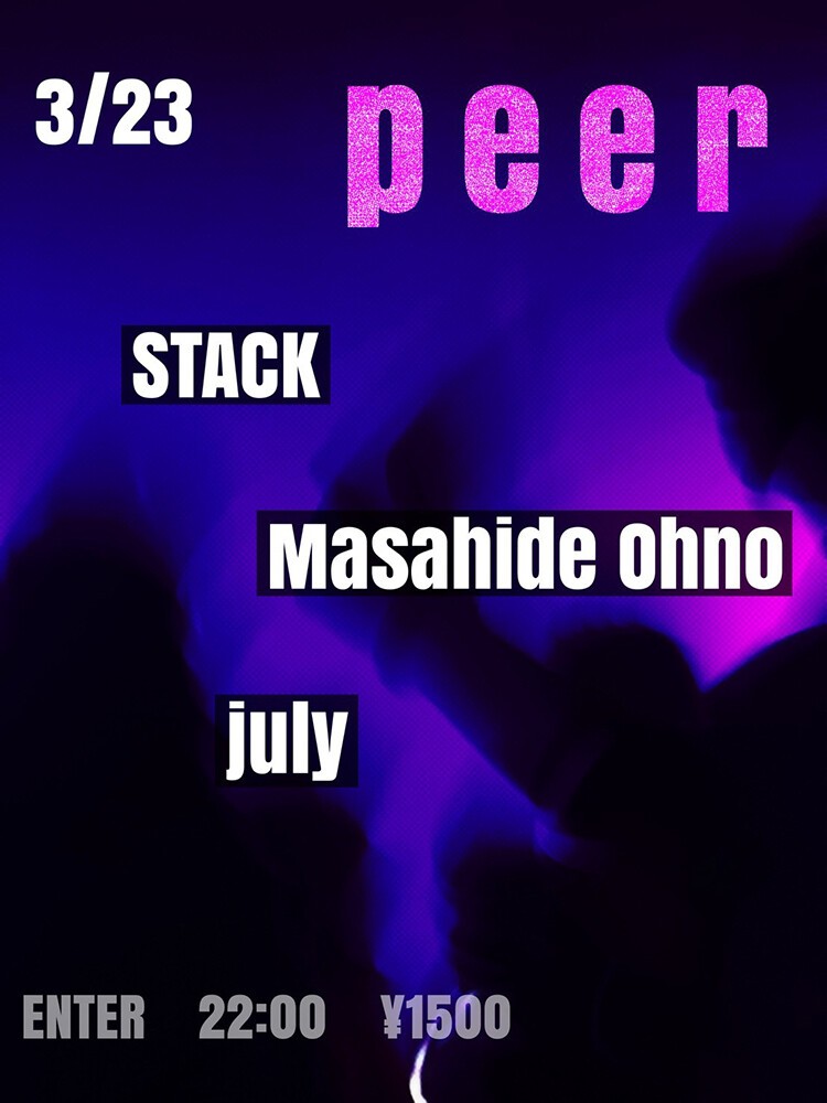4つ打ちを枢軸にする3名が集結。ハウスから転じてオーガニックな生音やディスコへと移ろいゆくSTACK、エレクトロやアシッド、コズミックディスコを軸に低重心なグルーヴを展開するMasahide Ohno、ディープハウス、アシッド、ミニマルから自らの桃源郷をフロアに投影するjulyが出演。