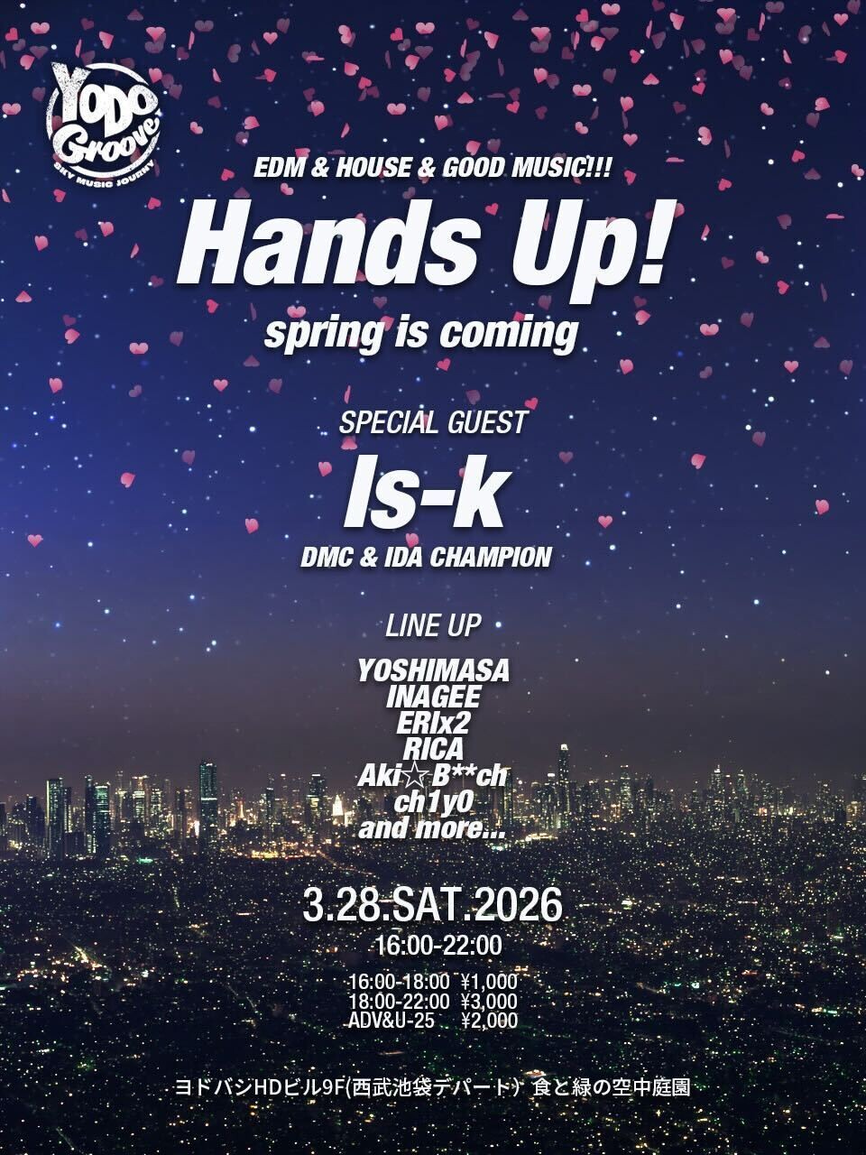 ageHa BOXで毎月開催してきたEDM PARTY「Hands Up!」が話題のNEW野外ベニュー YODO GROOVEで開催!