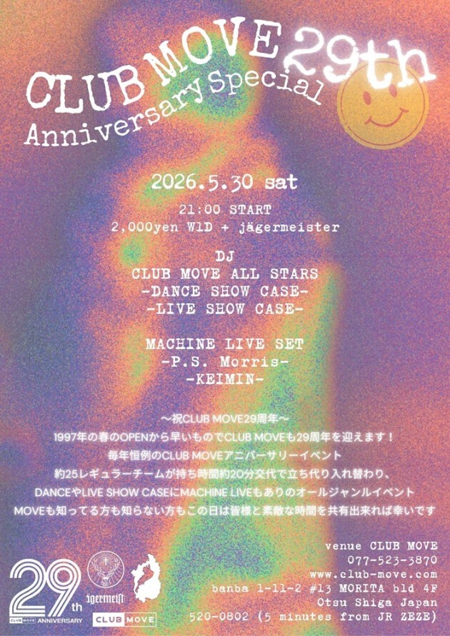 つきましては5/30(土)に『CLUB MOVE 29th ANNIVERSARY SPECIAL』