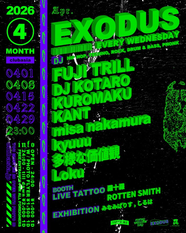 毎週展開されるBOOTHではLIVE PAINT, LIVE TATTOO, EXHIBITIONがEXODUSの輪郭をより表現。