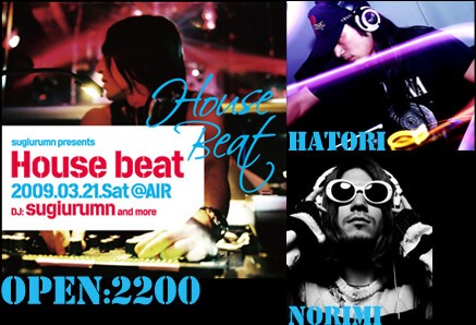 AIRのウィークエンドを熱くするレギュラーパーティの一つとして、存在感を発揮し続ける“HOUSE BEAT”。その軌跡は、主宰SUGIURUMNが描く上昇カーブと見事にシンクロしてきた。とりわけ、ここ数年、彼が世界最高峰のクラブといっても過言ではないPACHA IBIZAからリリースしてきたライブミックスCDシリーズは、SUGIURUMNが果たしたグローバルシーンへの飛躍の象徴といえるだろう。もちろんCD発売のたびに行われたリリースパーティは、毎回、フロアに集まったオーディエンスを沸点へ導くこととなった。また、AIRでスタートを切った“HOUSE BEAT”は、その後大阪GRAND CAF?、京都WORLD、福岡O/Dといった各都市を代表するクラブで開催され、全国規模のムーブメントになりつつある。次回に予定されているアニバーサリーパーティへ向けてますます波に乗るSUGIURUMNの、渾身のロングセットを見逃すな。