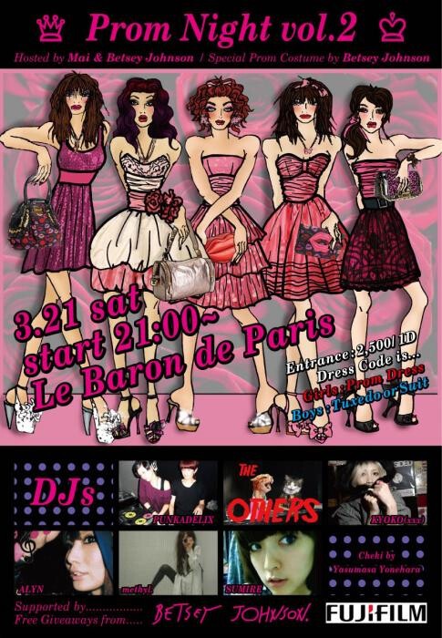 Girl DJs dressed in Betsey Johnson dresses will spin funky tunes. Plus there is cheki photo action from the inimitable Yone-chan, so dress up and come on down!