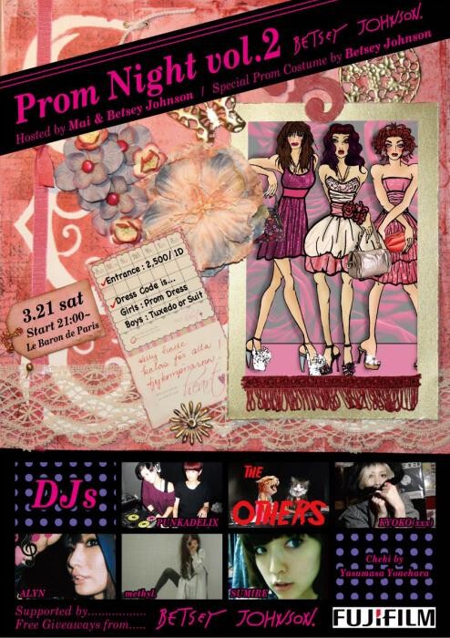 Remember the prom night scenes from movies like American Graffiti, Carrie and Back to the Future? It’s an occasion that everyone longs to experience once. From selecting a dress to being escorted by a guy, it’s a girl’s dream come true. After last year’s highly successful Prom Night, organized by Mai-chan and Betsey Johnson, this night sees the event reprised in even more fabulous style. The venue will be decorated like a high school gym decked out in pink, and there’ll be yummy fruit punch, too! And don’t forget the prom king and queen contest …