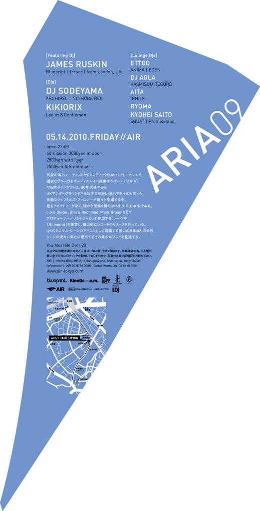 気鋭の海外ゲストやドメスティックDJのパフォーマンスで、濃密なグルーヴをオーディエンスへ提供する“ARIA”。今回メインアクトに登場するのは、 JAMES RUSKIN。90年代後半、UKアンダーグラウンドからSURGEON、OLIVER HOといった才気あふれるJEFF MILLSフォロワーが続々と現れるなか、傑出したクオリティでひと際大きな支持を獲得したアーティストである。LUKE SLATER、STEVE RACHMAD等がプロデューサー/リミキサーとして参加するレーベルBLUEPRINTの運営も手がけ、UKミニマルシーンのアイコンとして君臨する彼の、実に8年ぶりとなる来日を見逃してはいけない。
