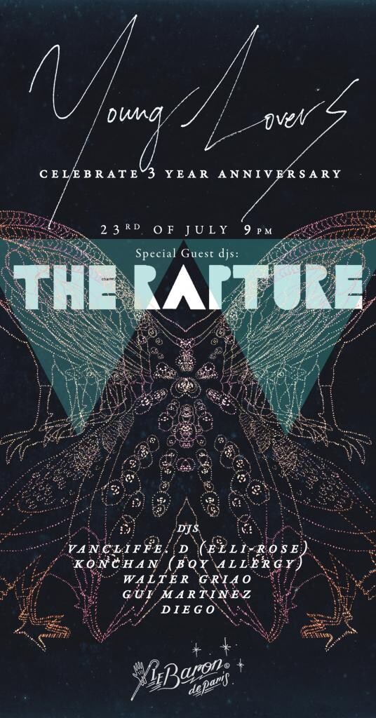 The Raptures Vito Roccoforte and Gabriel Andruzzi are coming to Le Baron de Paris this summer! Post-punk nature exploded noisy chaotic night special definitely going to be a special night. Young Lovers…The guest music selectors are the kids from YOUNG LOVERS, the multinational party conceived right here at Le Baron de Paris. The four members are at the core of Tokyo’s fashion scene and alongside The Rapture, who are in demand from top global fashion labels, it’s sure to be a big, big night!