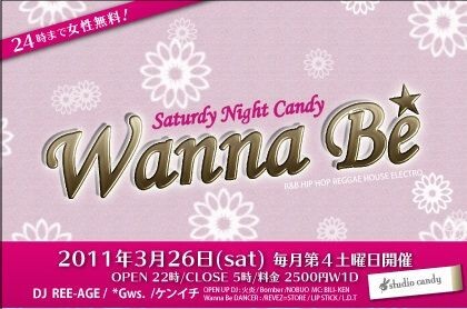 ☆第4土曜日の『Wanna Be』24時までは女性無料!