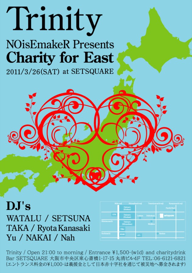 entrance 1500w1d and charitydrink (エントランス代1000は全て義援金として日本赤十字社を通じて募金されます。 )