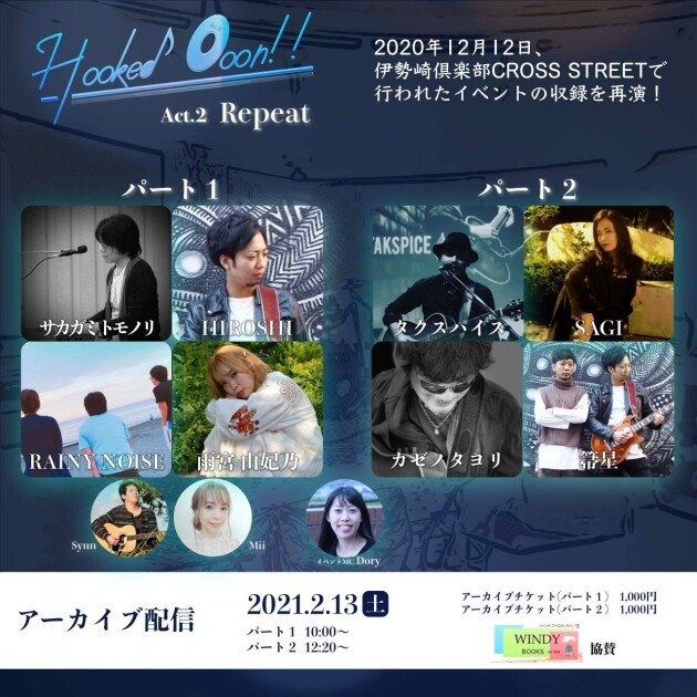 2020年12月12日に開催された「Hooked Ooon!! Act.2 〜伊勢崎倶楽部CROSS STREET〜」のアーカイブを前編(パート1)/後編(パート2)に分けてライブ配信。