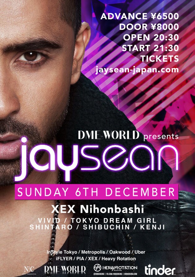 2015年12月5日(土)~2015年12月7日(月)R&B界の美メロ王子ことJay Sean(ジェイ・ショーン)』 の来日の運びとなりました。全米200万枚という記録的なセールスを叩き出し超絶ヒット曲となった デビュー曲『Down』ft. Lil Wayneは全米シングル総合チャートNO.1を飾り『アメリカ合衆国音楽チャート 史において最も成功したアジア系アーティスト』として歴史を作りました。 トップチャートを飾る美メロ楽曲と歌唱力、そしてその甘いマスクの虜となった根強いファン待望の来日 公演が12月6日(日)XEX日本橋で開催となります。