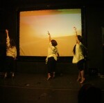 バーの通路を抜けると広々としたフロアと大画面のスクリーンがあります。