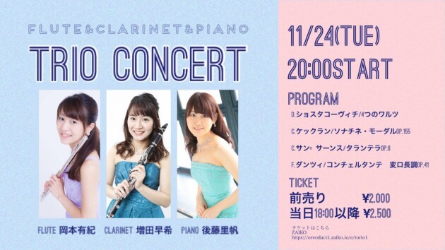 フルート:岡本 有紀 クラリネット:増田 早希 ピアノ:後藤 里帆