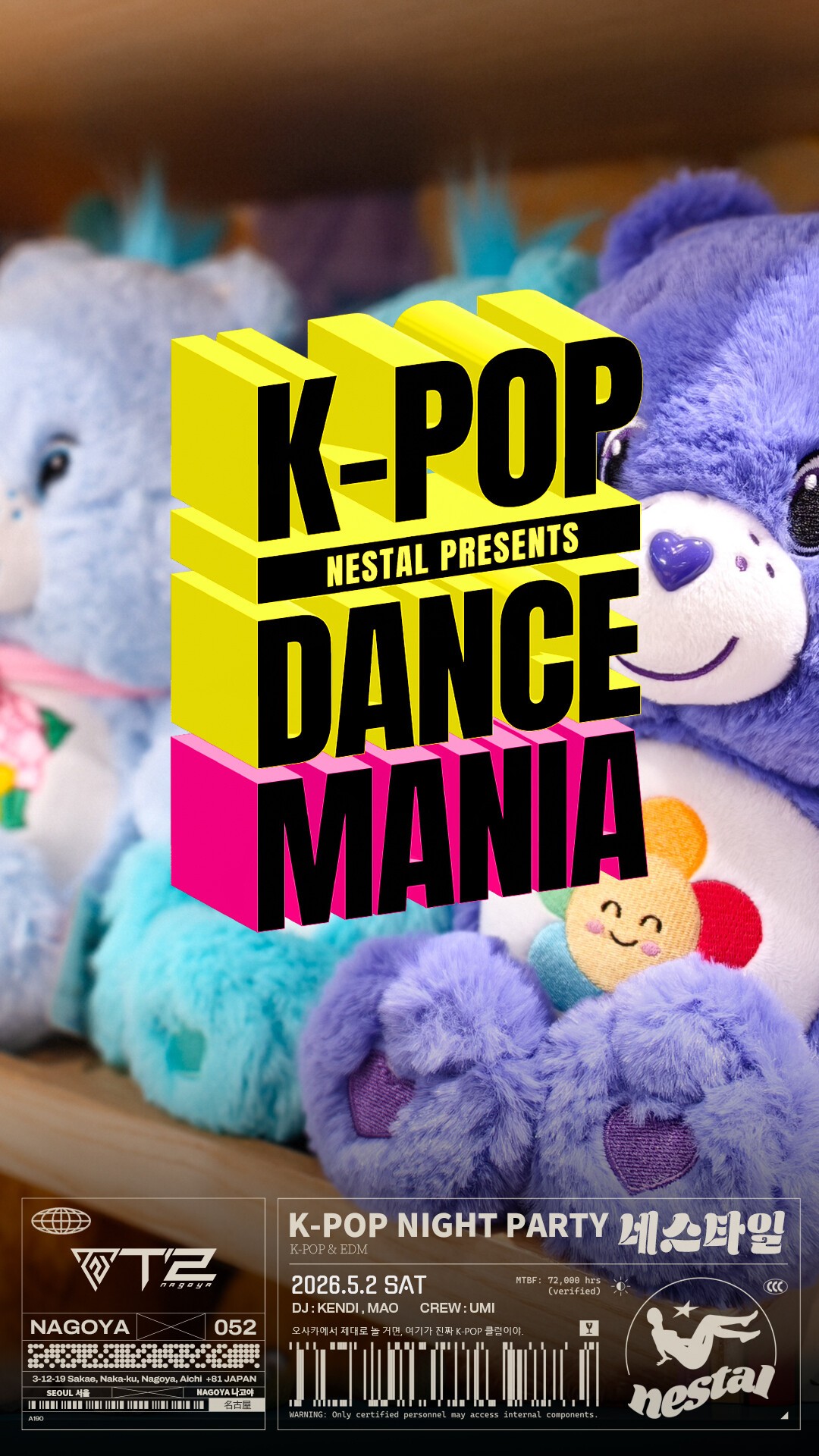 0 Stars SAT, 02 May 2026【名古屋】NESTAL K-POP DANCE MANIA|踊れるK-POPクラブイベント in T2 @ T2 NAGOYA / AICHI, JAPAN EDMHip HopCulture KENDI/MAO