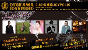 DAISHI DANCEらが出演し大好評で終了した「音霊 OTODAMA SEA STUDIO」と「東京JOYPOLIS」のコラボレーションイベント、OTODAMA JOY STUDIOが4月26日(金)に早くも2回目のイベントを開催する! Continue reading …