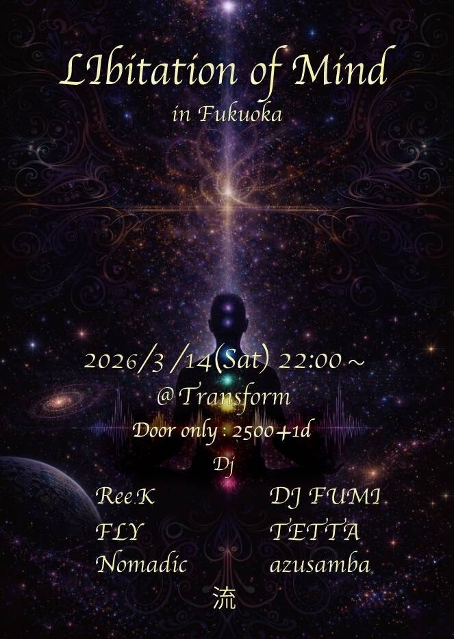 0 Stars SAT, 14 Mar 2026Liberation of Mind in Fukuoka @ Transform / FUKUOKA, JAPAN Psychedelic FUMI/FLY