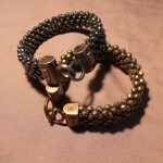 天然石を編みこむという新しい発想を軸にsilver925、皮革、エポキシ樹脂など素材の掛け合わせて作られる