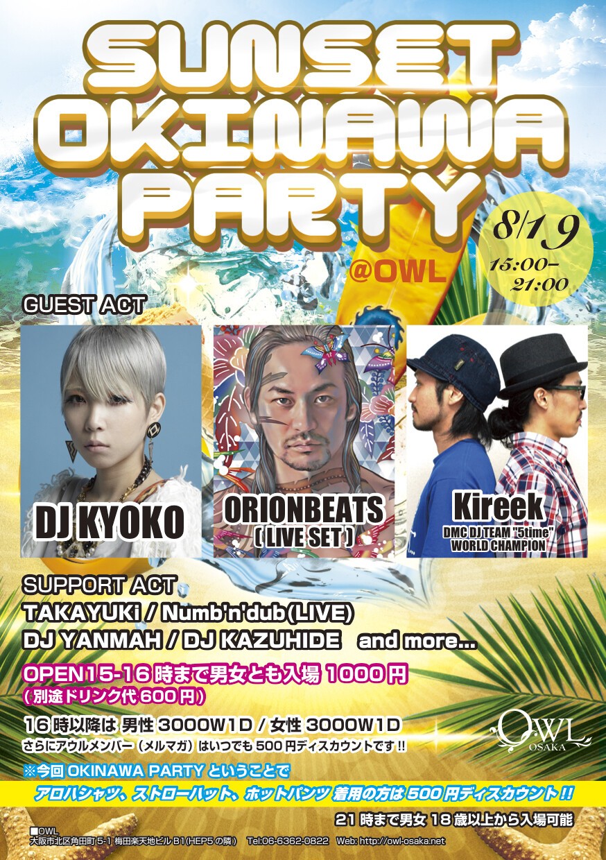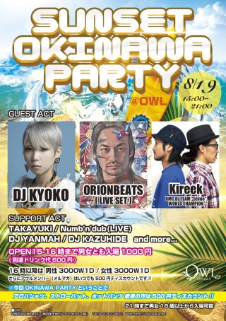 8.19(日)SUNSET OKINAWA PARTY @大阪梅田OWL