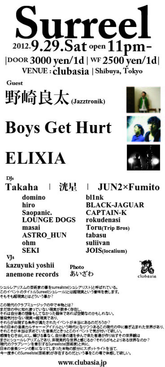 この現代のクラブミュージックの中で本物とは?まだ世の中に知れ渡っていない現実が数多く存在し、それは自分達の想像もしてなかった個体であれば空間なのかもしれない。普段気付かない現実=超現実であり、それらが出現する条件が満たされたイベントが本当にあるのだろうか?