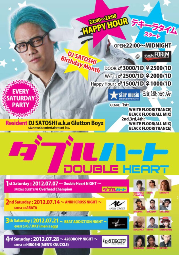 毎週土曜日の六本木を熱くするPARTY 「Double Heart」!!!