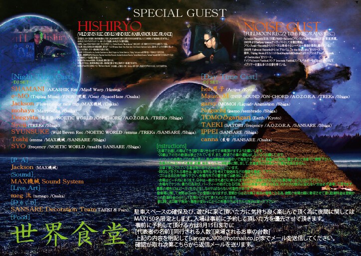 見所はFranceのWild Seven RecordzのOwner/Artistを務めるHISHIRYOに日本を代表するLabelであるFull Moon Recordsに所属し、今や日本を代表するArtistであるNOISE GUSTとLIVE SETが2本あります!!!