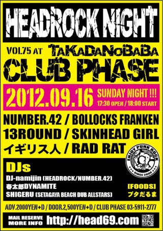 BAND:NUMBER.42/BOLLOCKS FRANKEN/13ROUND/SKINHEAD GIRL/イギリス人/RAD RAT