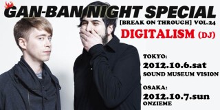 完全新曲を含む6曲ものニュー・トラックを収録した人気のミックスCDシリーズ [DJ KICKS]をリリースし、来日ツアーを発表したデジタリズム。ライブを行う東京・大阪各都市でDJパーティーGAN-BAN NIGHTが決定し、そこでデジタリズムがDJセットを披露する。