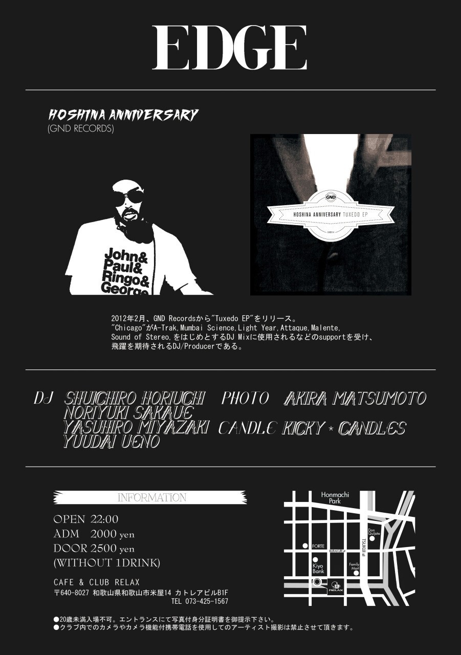 ADM:2000yen(without 1drink) DOOR:2500yen (without 1drink)