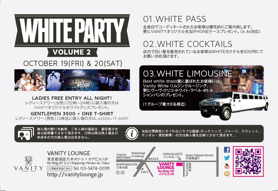 イベント:VANITY LOUNGE TOKYO PRESENTS 「WHITE PARTY」開催決定!!!