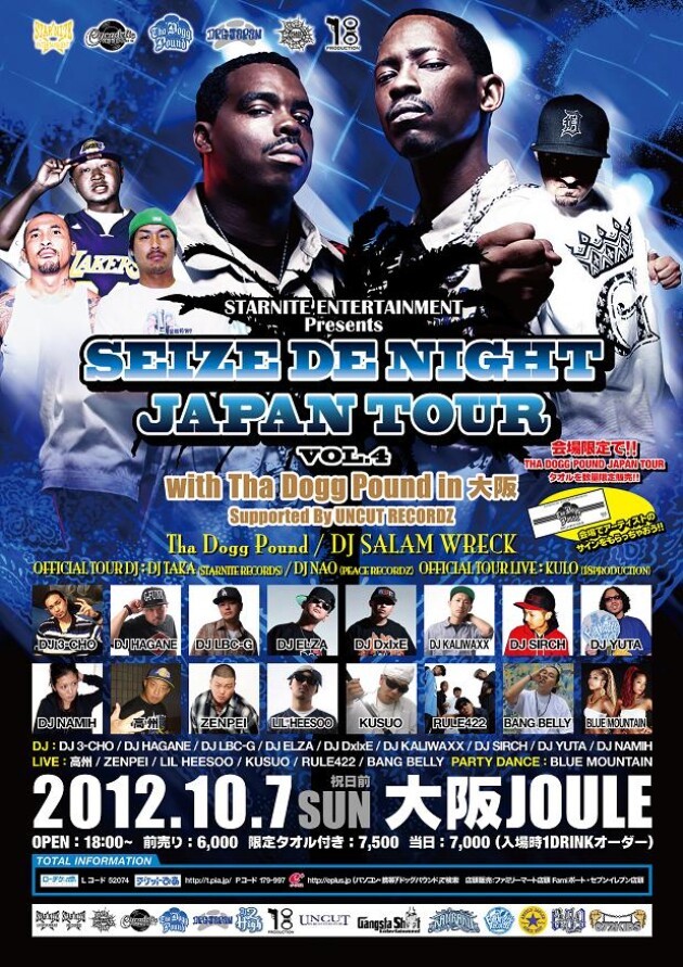 アメリカ西海岸のボス「SNOOP DOGG」と共に古くから西海岸HIP HOPシーンに大きな功績を残す、レジェンド「THA DOGG POUND」の来日公演が遂に実現!!世界中に多くのファンを持つトップ・アーティストの来日を心待ちにしていたファンも数知れず。そんなレジェンドが2012年多くのクラシック・ナンバーを引き下げ堂々来日。日本全国から多くのファンが足を運ぶ事が確実に予想される伝説の来日公演になる事は間違いない。