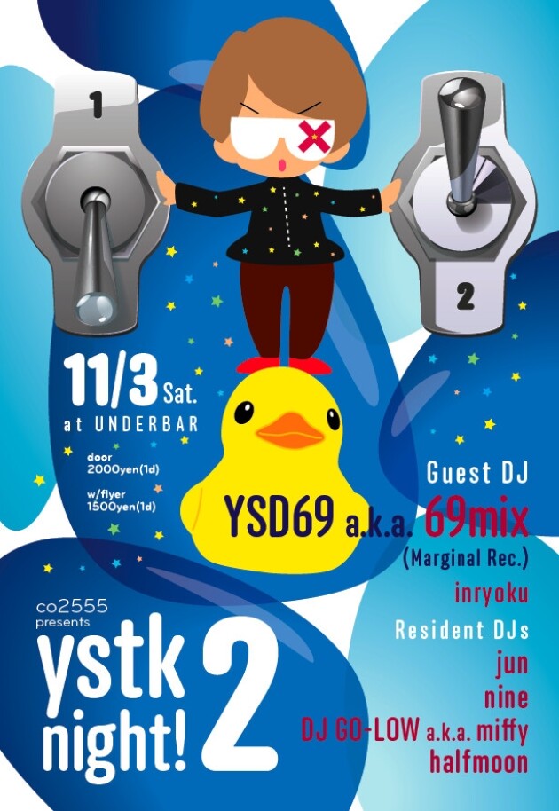 今年7月、初開催され好評のうちに終わったystk night!がオールDJセットで戻ってきました!選曲もystk中心から幅を広げ、各DJ陣、ystk曲以外からも選りすぐったトラックでプレイ!