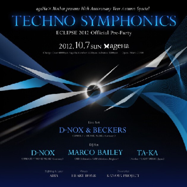 今年11月にオーストラリア・ケアンズで開催される”ECLIPSE2012”のオフィシャル・プレ・パーティーとなる本公演。ARENAにはお馴染みD-NOX&BECKERSが登場。そして迎え撃つはMother初出演となるハードテクノの雄・MARCO BAILEY!ダブルヘッドライナーが紡ぐ壮大かつ深淵な物語に期待が高まる!