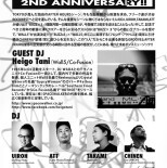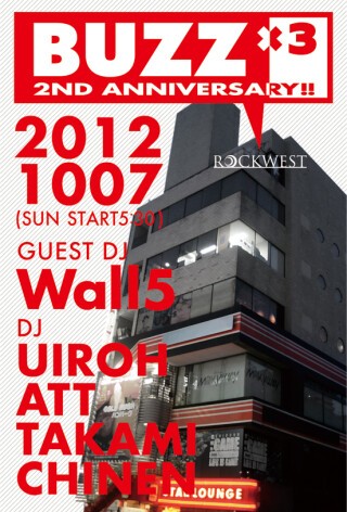 そして、記念すべき2周年の歓喜に沸くフロアーをさらに彩るゲストDJには"BUZZ×3"からの熱いラブコールを受けて、"WALL5"が出演決定!!!!「BUZZx3」×「WALL5」がここに実現する!フロント・アクトには1周年に引き続きCHINENが登場!
