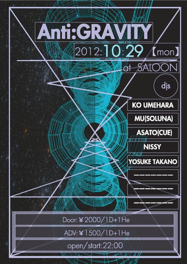 代官山saloonに宇宙空間が出現!!限りなく照明を落としたフロアに星空が瞬き、都内外で活躍中のDJ陣が贈るSPACEY SOUNDにて皆様を非日常的な空間へ誘います