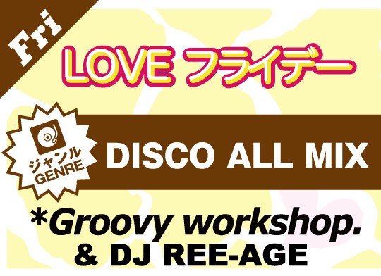 大阪以外のクラブ(渋谷キャメロット、札幌a-life、高松NUDE、神戸Beber等)でもレギュラーを持つ程の人気を誇り、関西のクラブシーンには、なくてはならないオールジャンルDJs「*Groovy workshop.」がプロデュースするイベントの「LOVEフライデー」