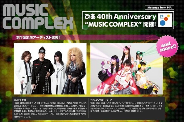 雑誌「ぴあ」は休刊いたしましたが、チケットぴあや各種出版物、主催イベントなどを通じお客様に、様々なエンタテインメントをお届けします。そこで、弊社の40周年という節目に際しまして、アニバーサリー・イベント『MUSIC COMPLEX 2012』を企画いたしました。