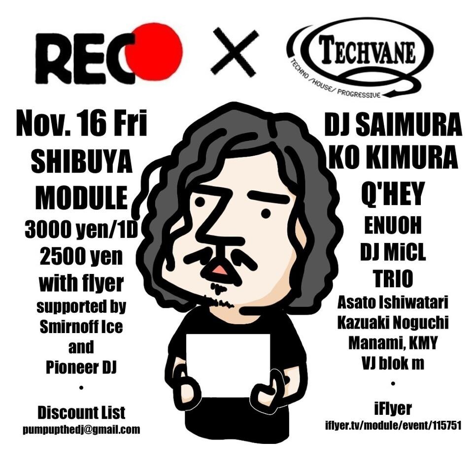 この二つのパーティが融合し行なわれる今回の11/16(fri)REC×TECHVANEは、シーンを担って来た二人のベテランと若手DJが鎬を削る、前衛的な一夜となるであろう…