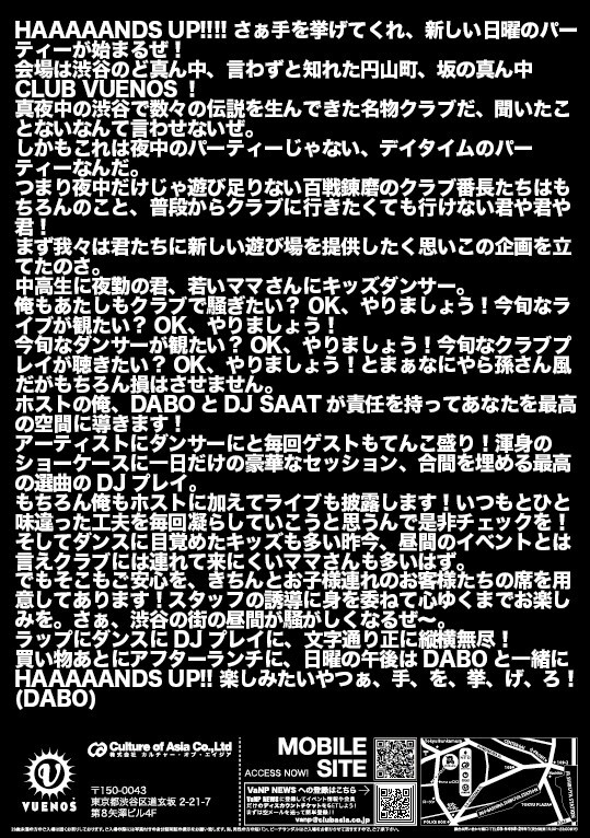 ホストの俺、DABOとDJ SAATが責任を持ってあなたを最高の空間に導きます!