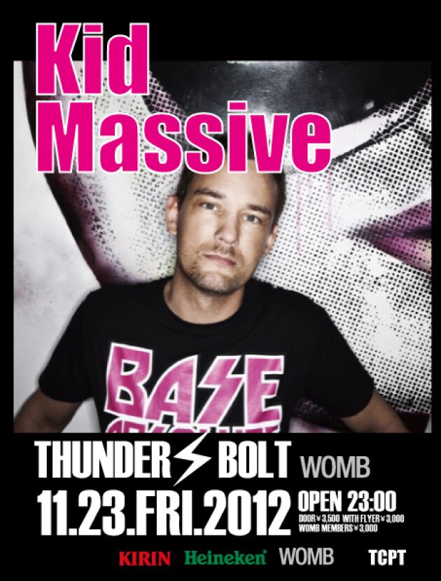今が旬のワールドワイドに活躍するアーティストを招致し絶好調の「THUNDERBOLT 」が 11月23日金曜の夜にWOMBで開催することが決定!。 4回目のTHUNDERBOLTのゲストは今年のFUJI ROCKにも出演し FATBOY ALIM、TIESTOがサポートするファンキーエレクトロ系のダークホース「KID MASSIVE」が登場! RESIDENTには今年の9月にリリースした「Lock on you」がBeatportの「ELECTRO HOUSE トップ 10リリース」にて21位を獲得するなど ブレイク寸前のジャパニーズEDMユニット「TINYDUCKS」。 11月23日は最新のEDMサウンドがWOMBに雷鳴を轟かせる!