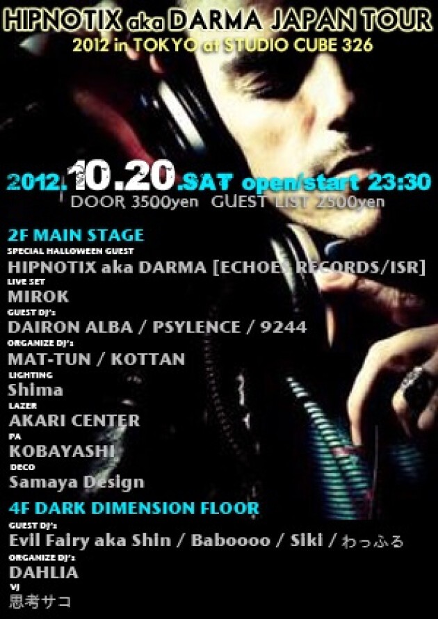 HIPNOTIX aka DARMA JAPAN TOUR 2012 東京公演を、10月20日(土)キューブにて開催!!