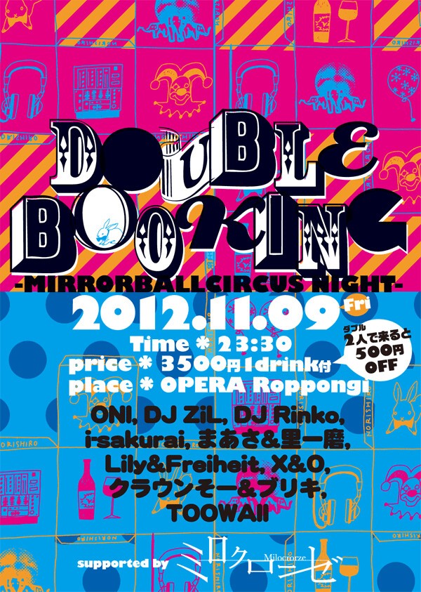 選りすぐりのDJ、美しいパフォーマー・・・を、全部2倍のダブルブッキングでご披露!DJはバックトゥバック、パフォーマーは2人以上同時でお届けする前代未聞のダブルブッキングタイム!