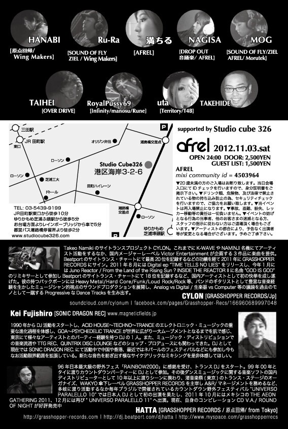 GRASSHOPPER RECORDSの主宰/A&R/マネージメントを務め、渚音楽祭(東京)トランスステージのオーガナイズや、自身のコンピレーションCD V.A./ROUND OF NIGHTも好セールス中のDJ HATTAを迎える。